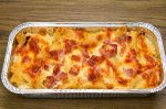 Punem pastele la fiert in apa cu sare,apoi le clatim cu apa rece si le punem intr-o tava unsa cu unt. Taiem cubulete mici salam sau bacon, adaugam pe deasupra pastelor,frisca lichida,si un sfert din branza rasa,sare si amestecam pastele. Pe deasupra pastelor adaugam toata branza rasa in asa...