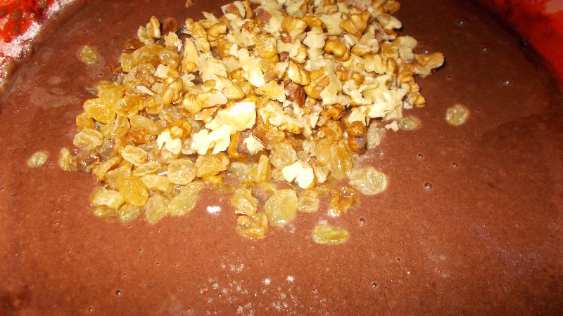 Negresa de post cu nuca, dulceata si stafide aurii-6