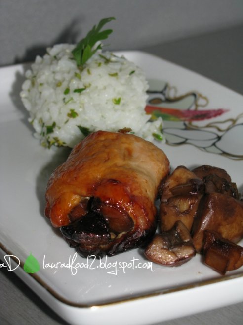 Pui umplut cu ciuperci si orez aromat