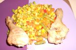 Pulpele de pui se pun in tavite de unica folosinta,se condimenteaza si se pun la cuptor timp de 30 minute.Legumele congelate le-am facut in tigaia dry cocker cu putin unt,le lasam 5 minute sa se caleasca putin,dupa care se adauga apa cat sa le acopere,sare,piper si se lasa pana scade apa,cand...