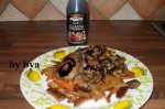 Ciupercile se curata de coaja sau se spala foarte bine si se taie feliute subtiri dupa care se pun in tigaia Dry Coocker cu putin ulei de masline si putina apa. Ficatul de pui se curata si se clateste bine dupa care il adaugam peste ciuperci. Morcovul si usturoiul se taie rondele si se adauga in...