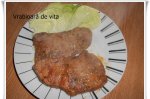 Clatim feliile de vita, le punem pe un servet de hartie sa absoarba apa. Le condimentam cu sare si piper si le lasam deoparte. Pregatim amestecul format din 2 oua si faina, dam feliile de vita si le punem in ulei la prajit. Cand sunt gata se scot pe un servet de hartie.