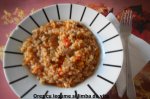 Morcovul, ceapa si usturoiul le-am bagat la robot sa se marunteasca. Se pun la calit in ulei de masline si adaugam si cana de orez. Turnam zeama si condimentele si lasam la foc mic sa se fiarba orezul, se amesteca des ca sa nu se lipeasca. Cand e aproape gata adaugam vinul si feliile de limba...
