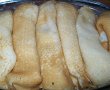 Asezati frumos deasupra, peste clatitele innecate in sos si bagati la cuptor pt. aproximativ 20 minute (preincalziti cuptorul si lasati-l usor intredeschis cat timp sunt clatitele ;eu am plasat acolo o lingura de lemn:d)