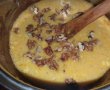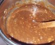 Topim ciocolata cu untul, pe baie de aburi. Eu am avut o ciocolata cu crema de frisca, dar recomandata este ciocolata simpla cu lapte.