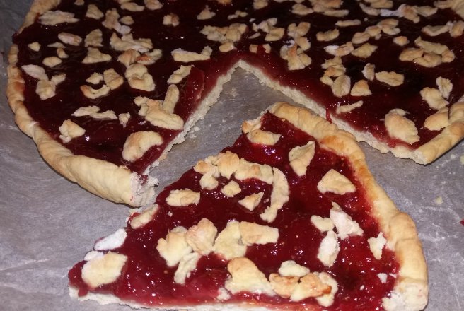 Punem capsunile in foarma de tarta, presaram restul de aluat oprit( la mine a fost cam putin) si dam la cuptorul preincalzit pentru 25-30 de minute.
